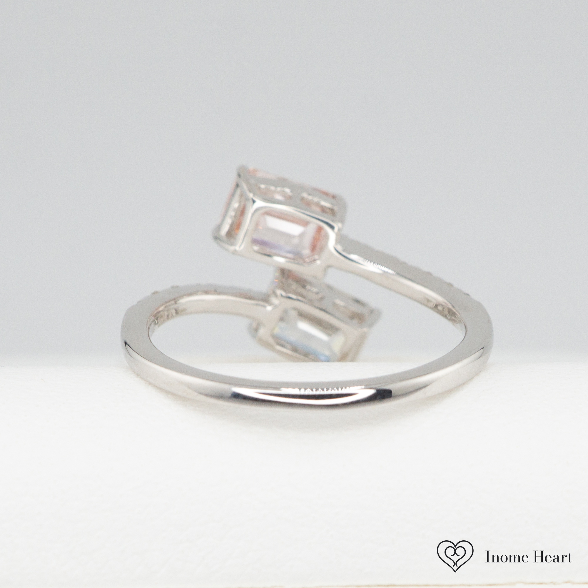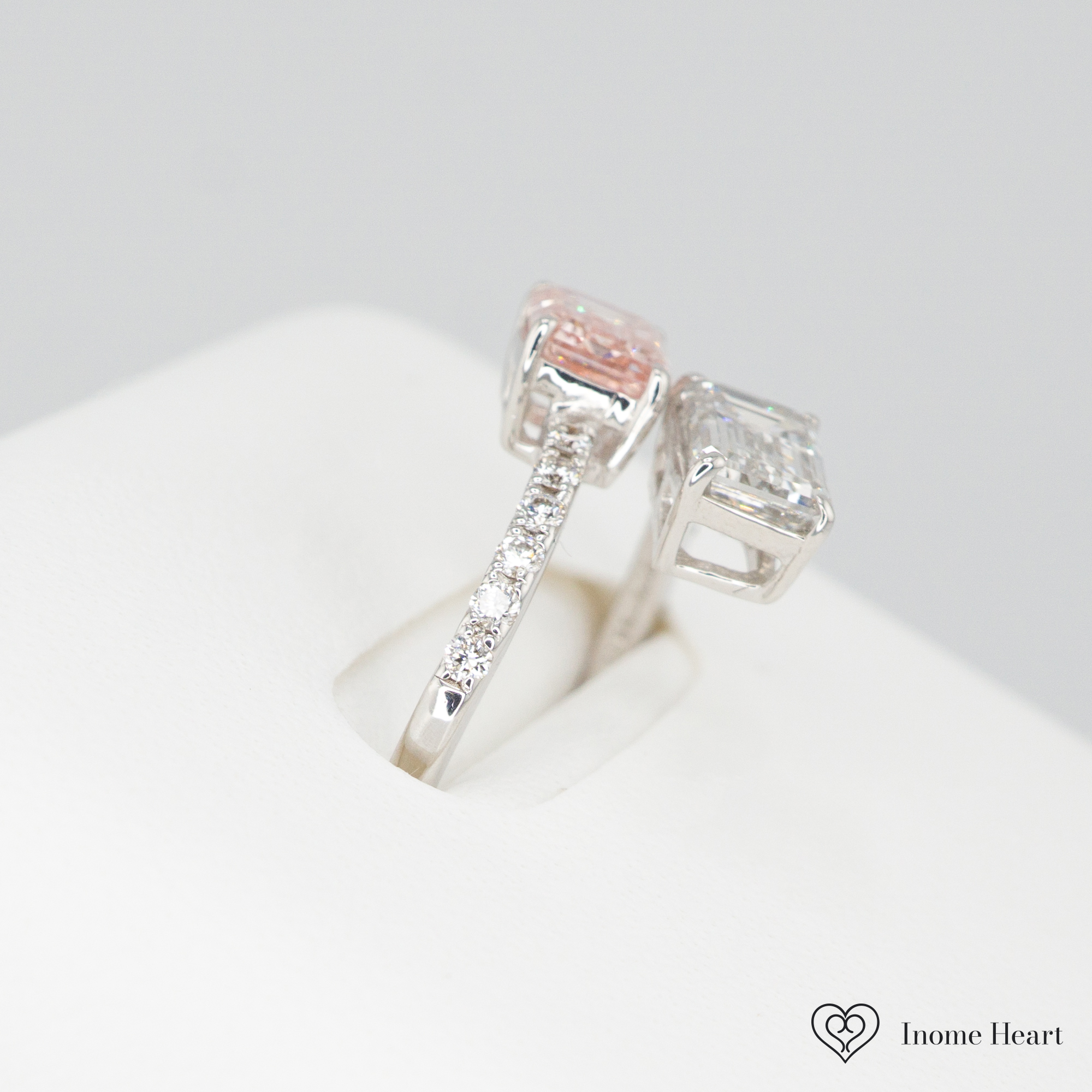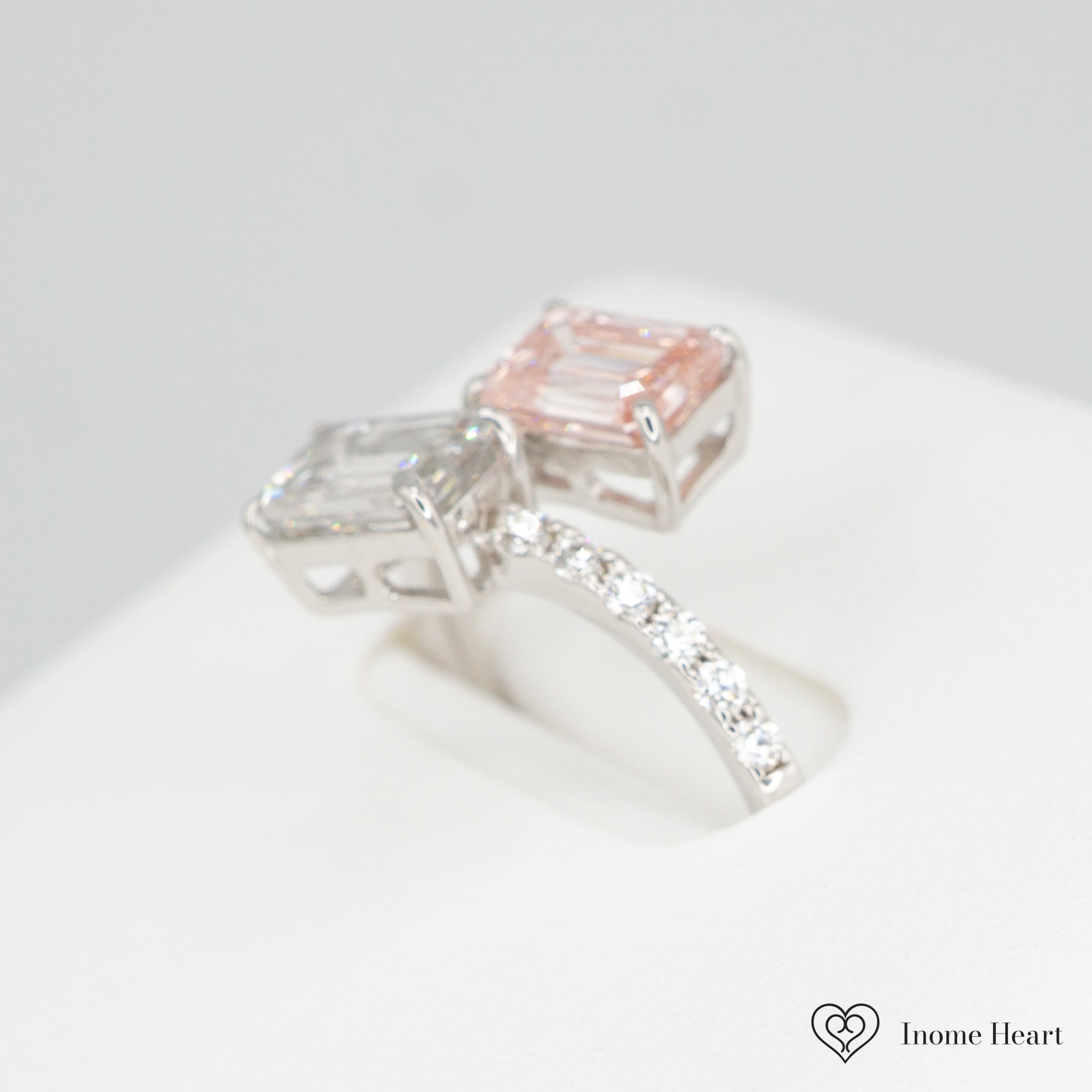 1カラットのダイヤモンド をセットし、さらに インテンスピンクの1カラットダイヤモンド を重ねるように配置。