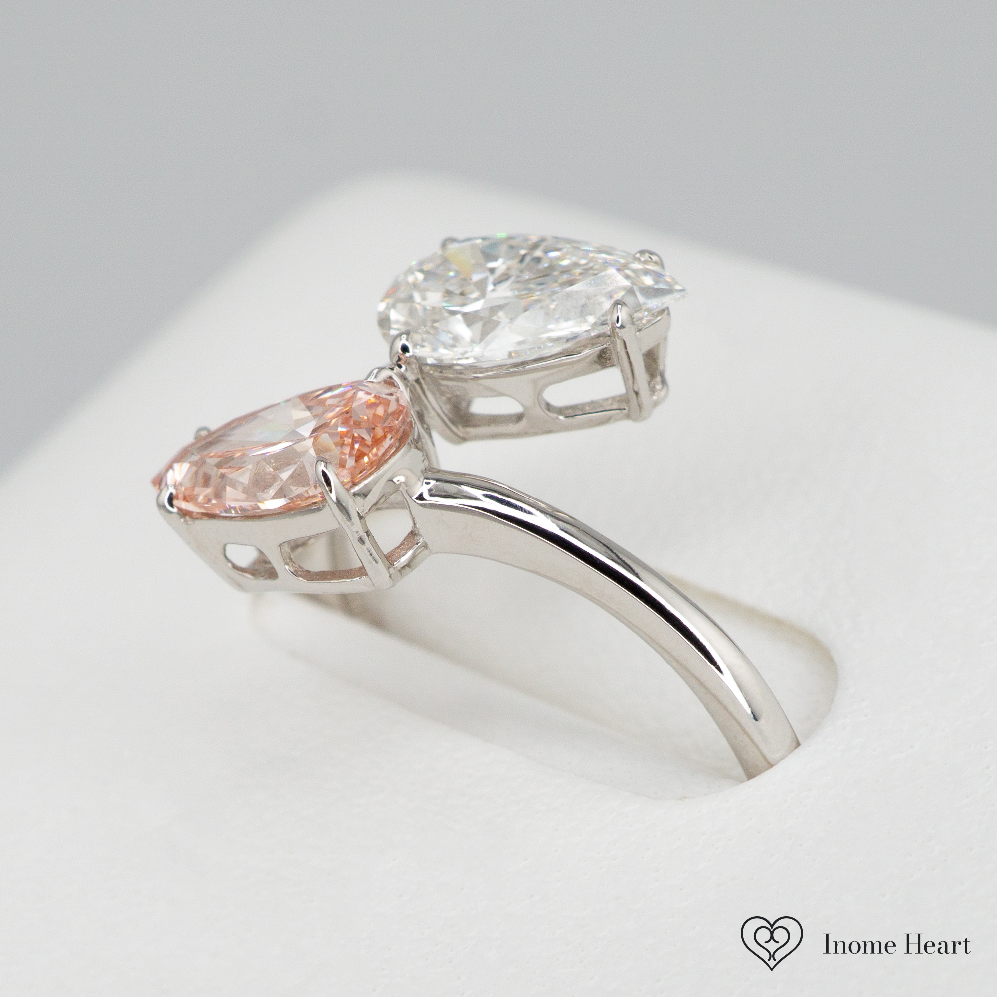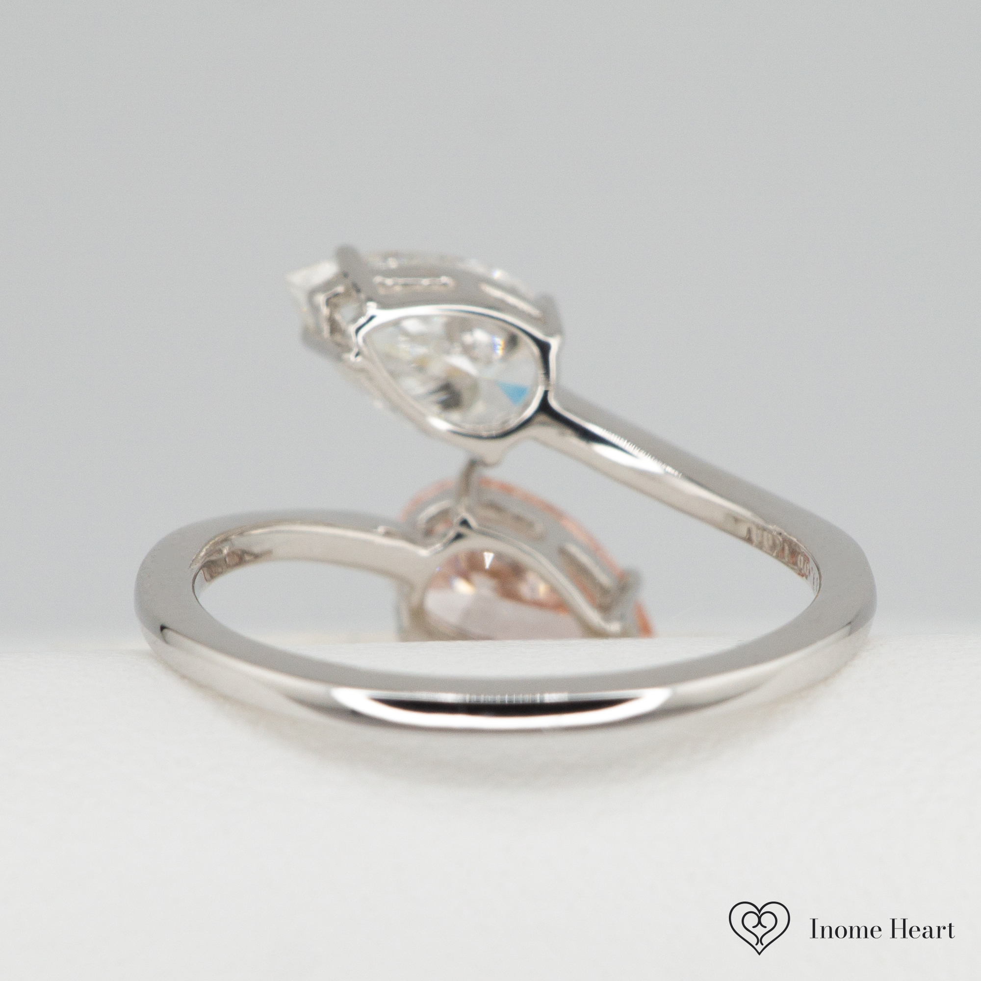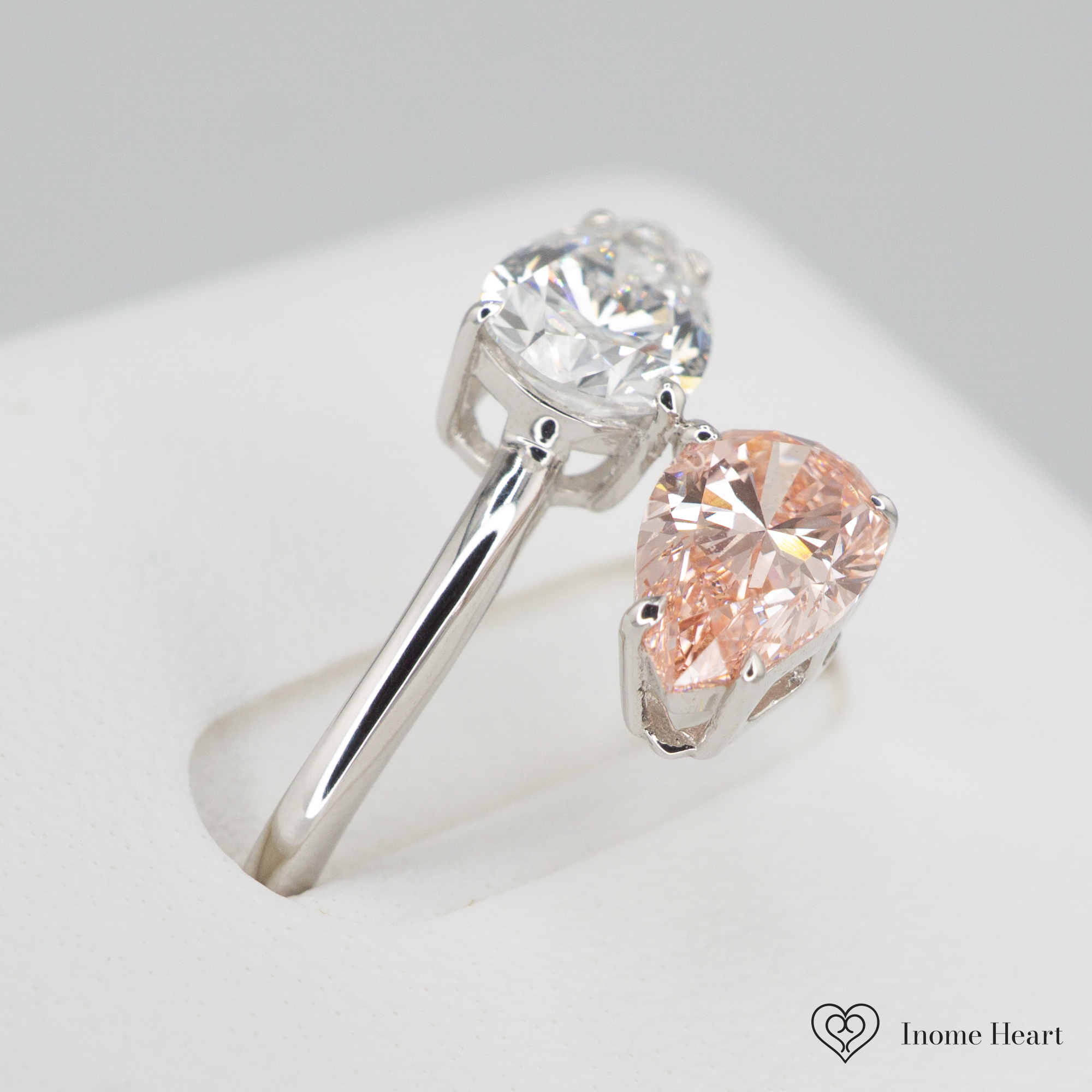 1カラットのダイヤモンド をセットし、さらに インテンスピンクの1カラットダイヤモンド を重ねるように配置。