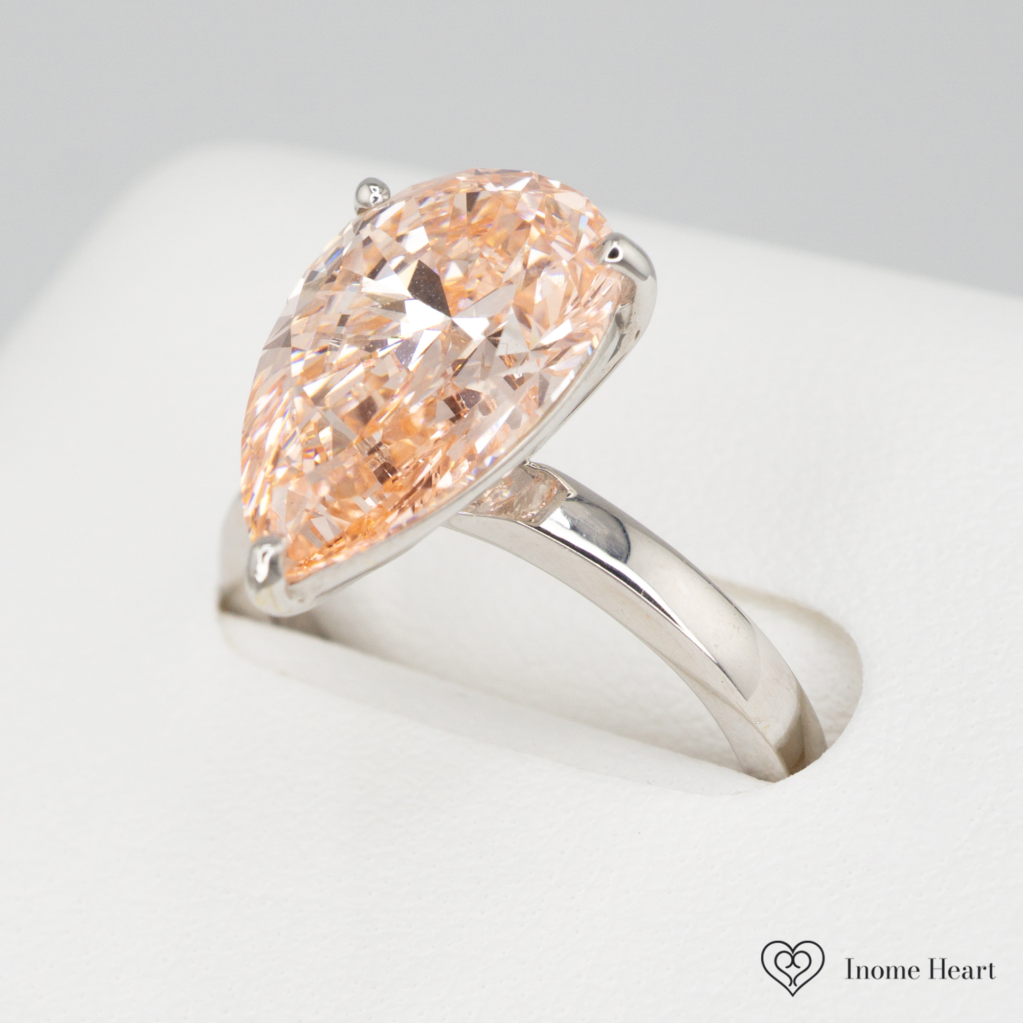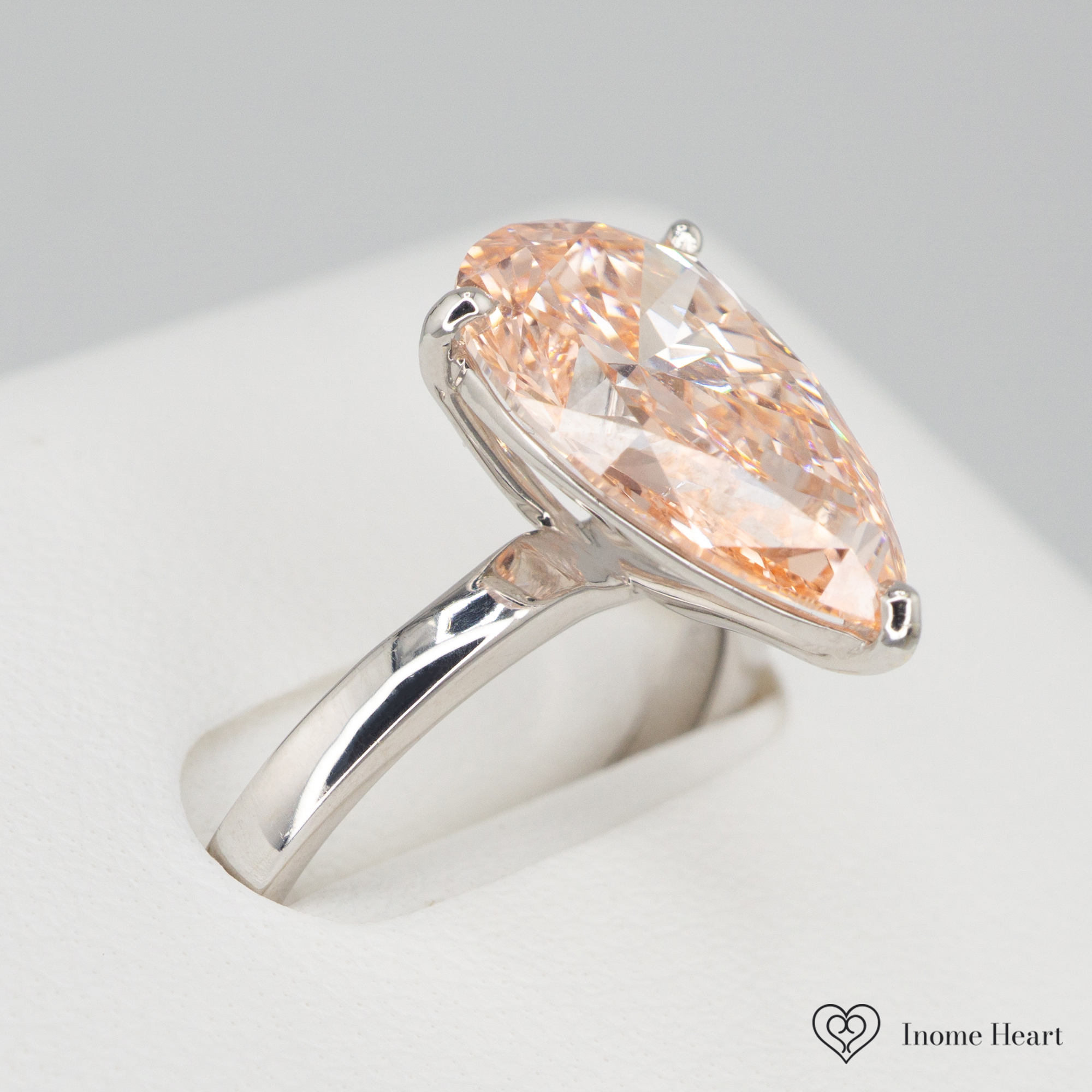 ペアシェイプカットならではの優雅なフォルムが、光を美しく集め、指先を印象的に演出します。