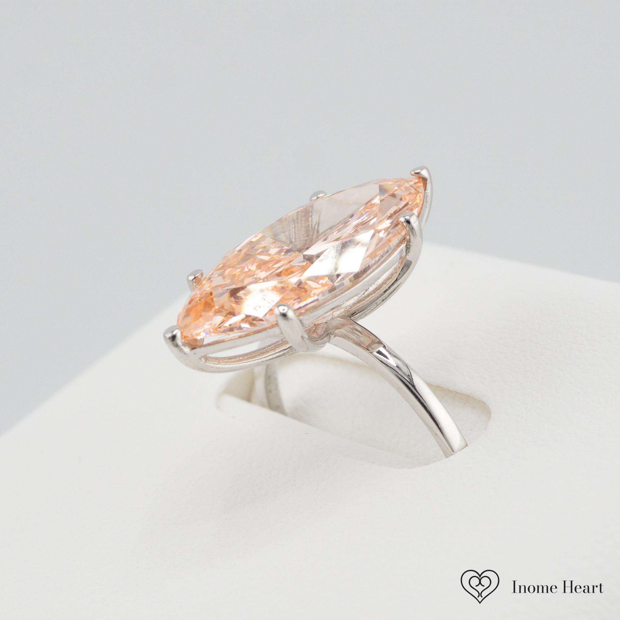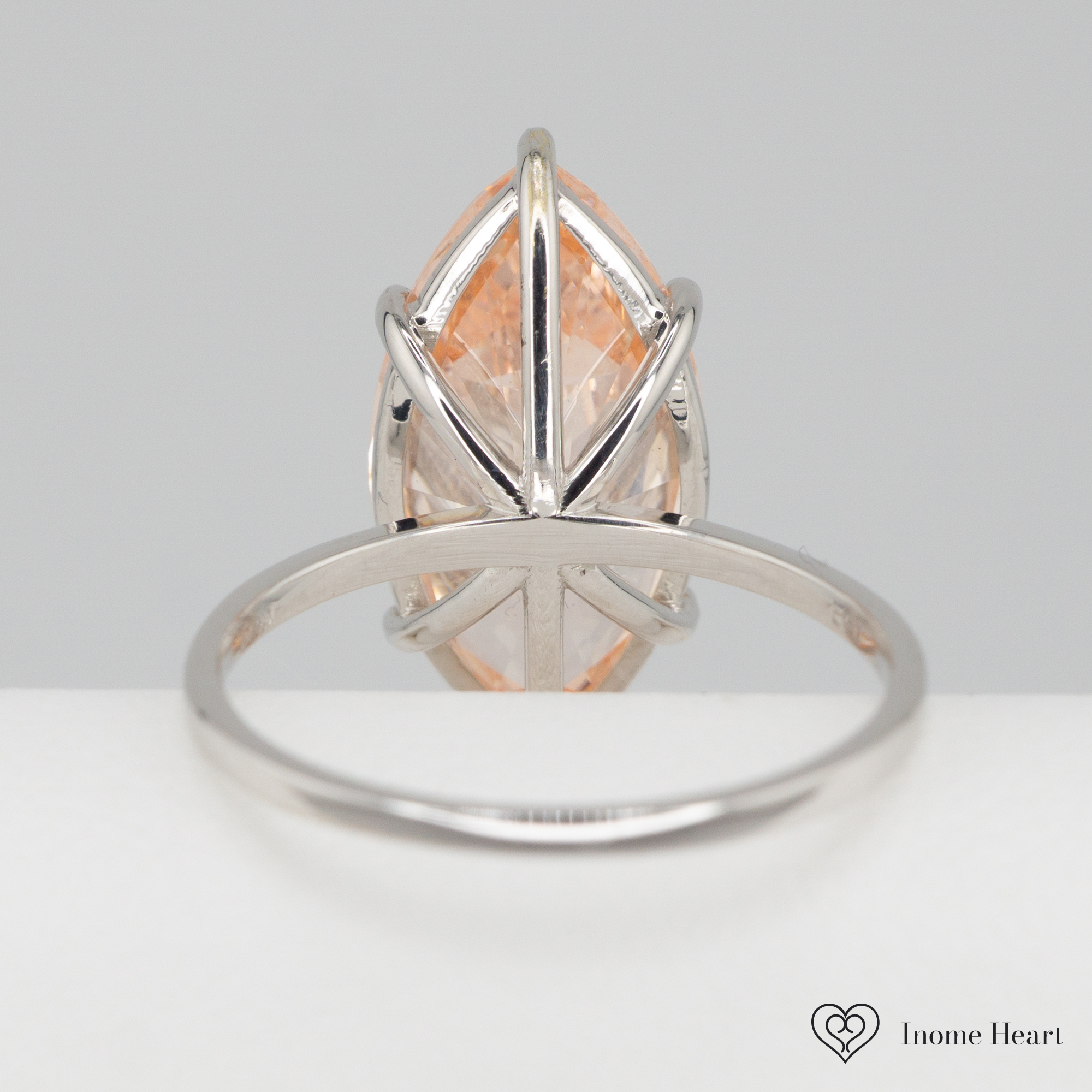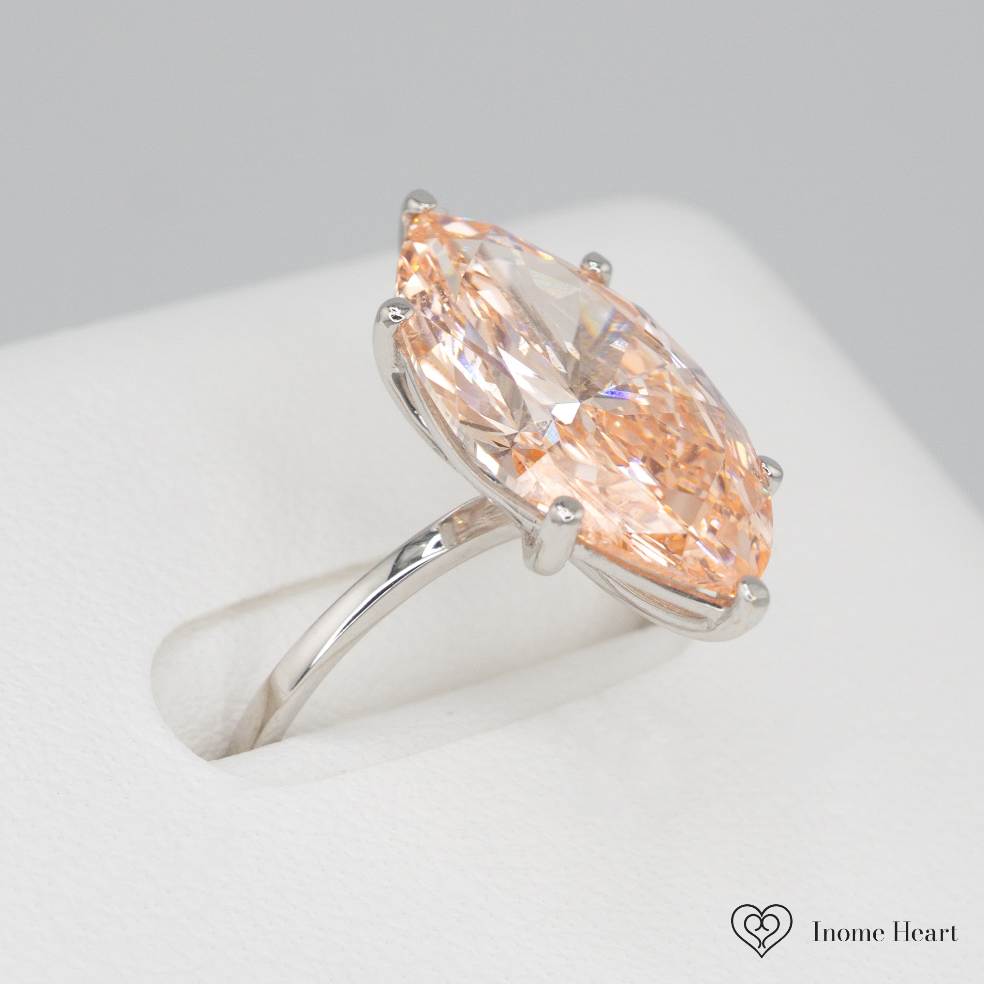 優雅な曲線と鋭い輝きを併せ持つ、6.01カラットのマーキスカット ピンクダイヤモンド を主役にしたリングです。