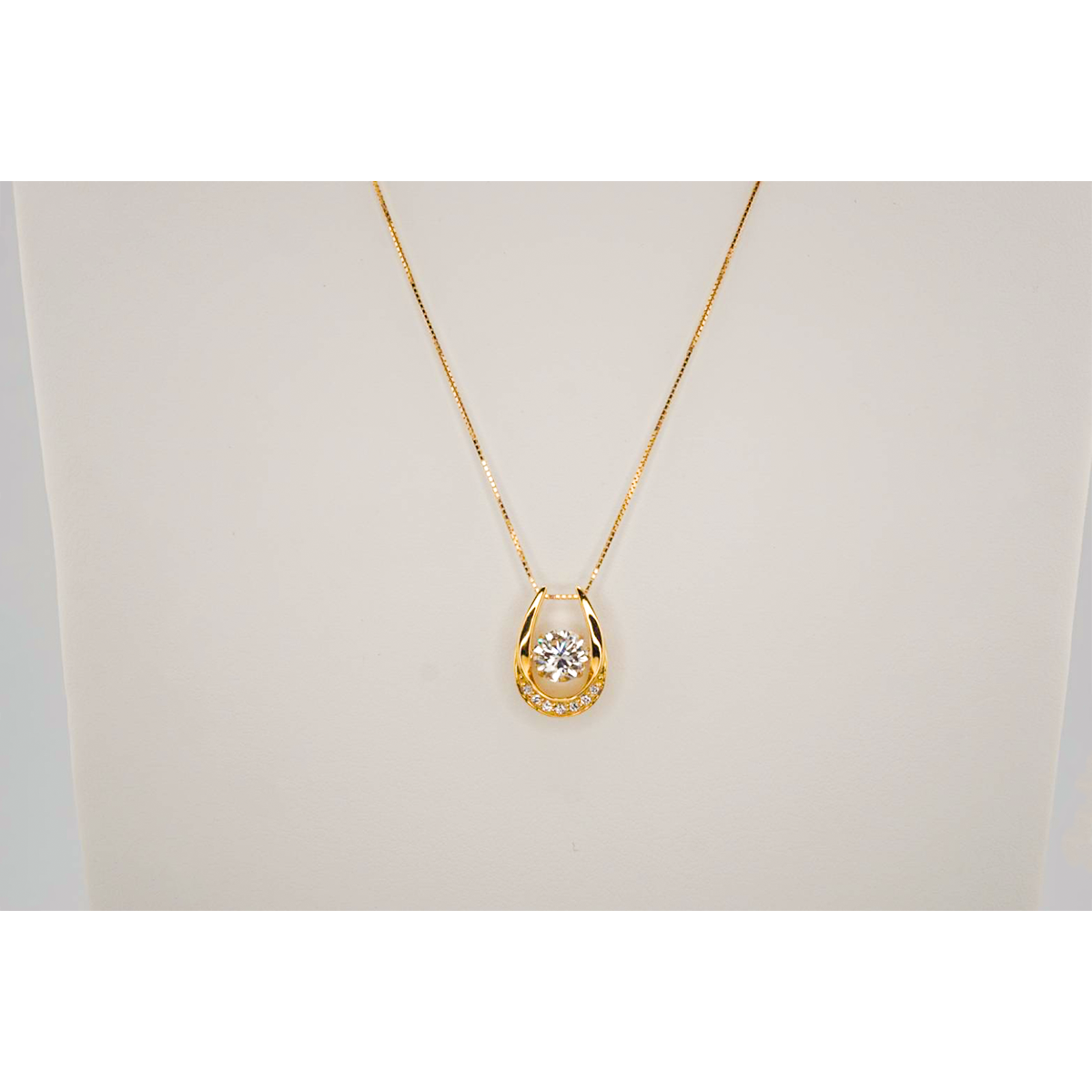 イエローゴールドのやわらかな色味がダイヤモンドの透明感を引き立て、胸元に自然な明るさを添えます。