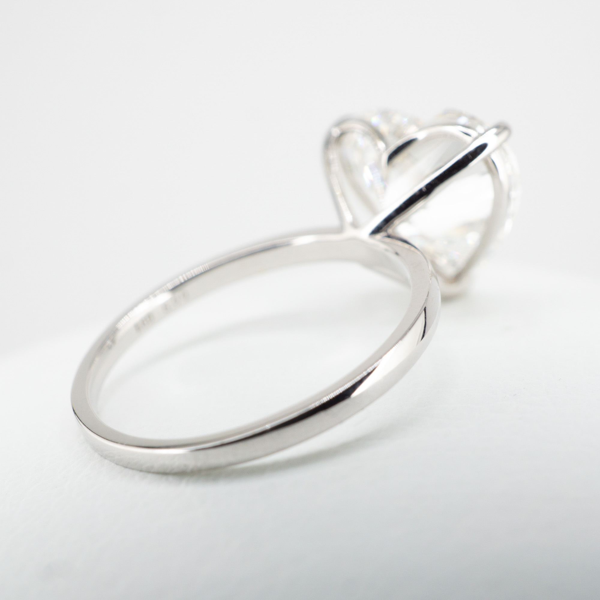 正面から見ると、ハートシェイプがはっきりと浮かび上がるラボグロウンダイヤモンドリング。
